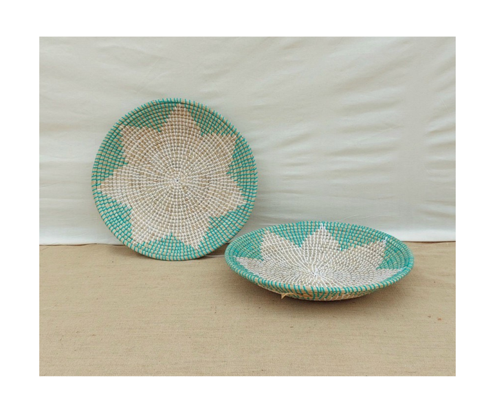 แผ่นรองจานหญ้าทะเลแขวนผนังสำหรับตกแต่งบ้านตะกร้าสานด้วยมือแขวนตกแต่งผนัง