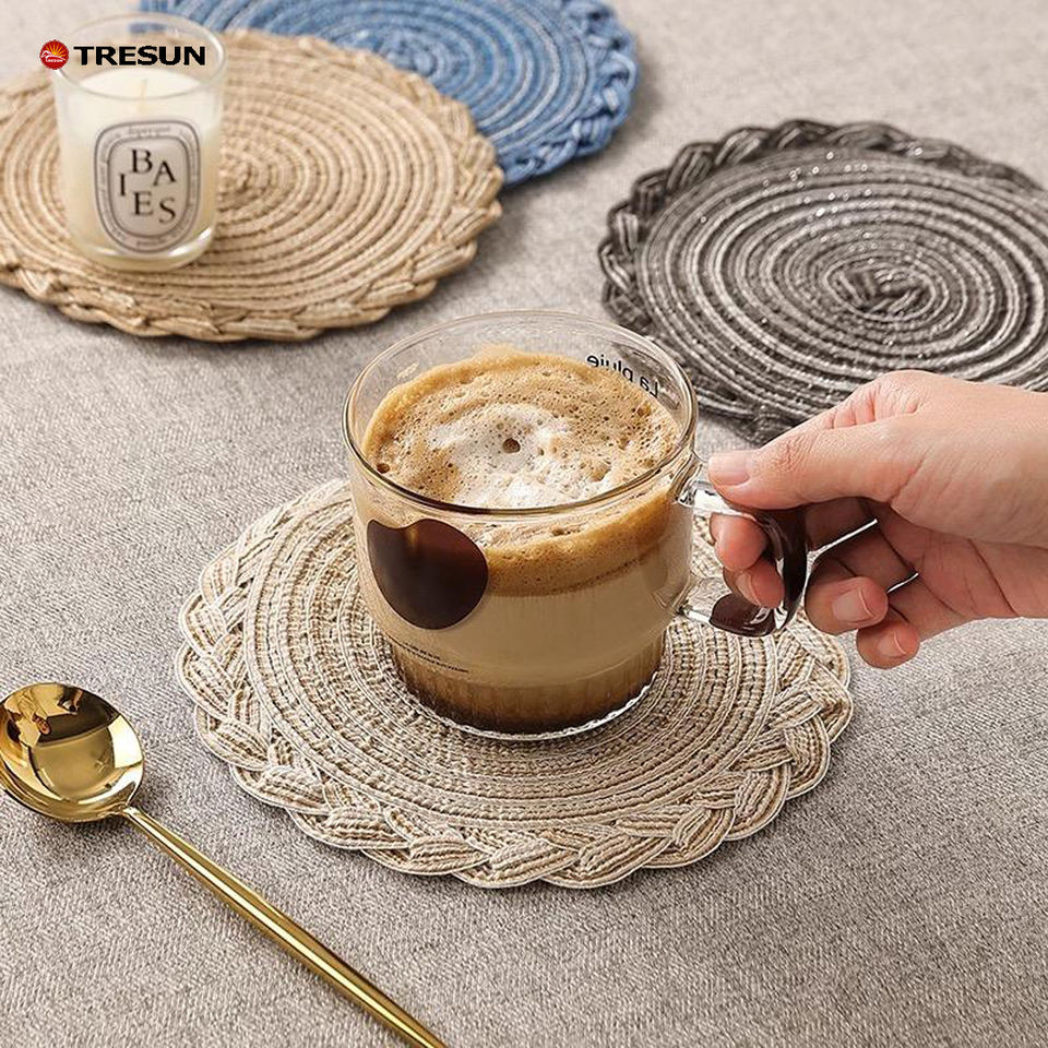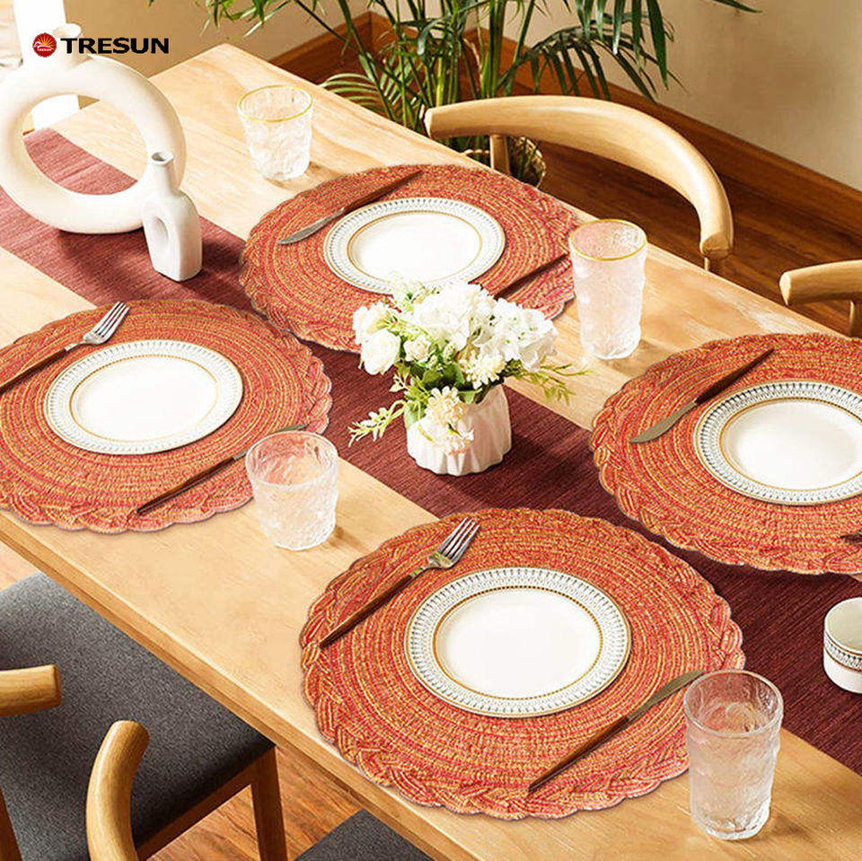 ชุดแผ่นรองจานสำหรับโต๊ะรับประทานอาหาร แผ่นรองจานหนังเทียมทนความร้อน ทำความสะอาดง่าย เหมาะสำหรับใช้ในร่มและกลางแจ้ง