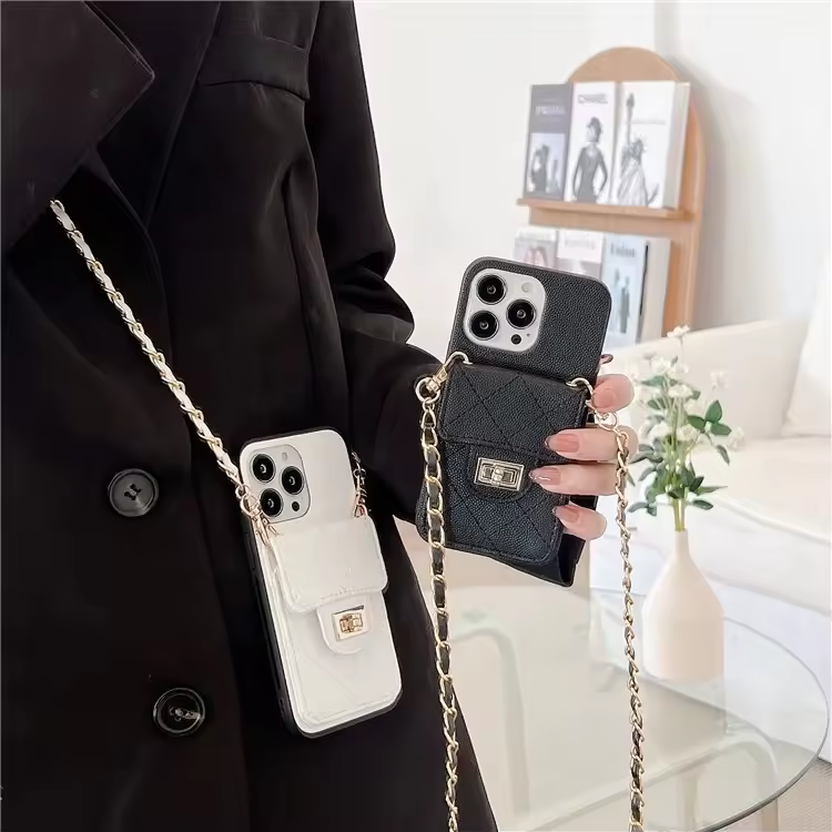 ที่ใส่บัตรลายสก๊อตที่ใส่บัตรเครดิตเคสมือถือแบบสายโซ่แนวทแยงสำหรับ iPhone 15 14 13 12 11 Pro Max PLUS