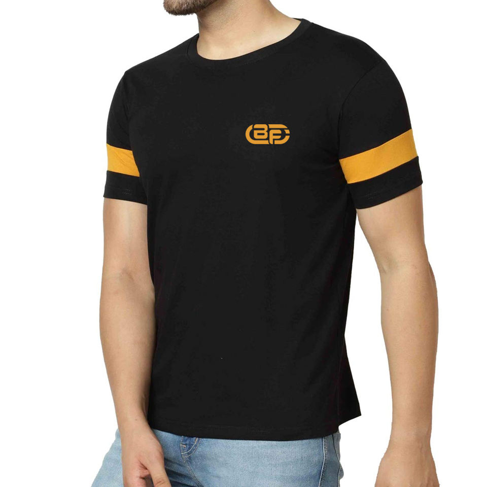 เสื้อยืดผู้ชายพิมพ์โลโก้ได้ตามต้องการเนื้อผ้าระบายอากาศได้180กรัมสีดำล้วนทำจากโพลีเอสเตอร์/ คอตตอน
