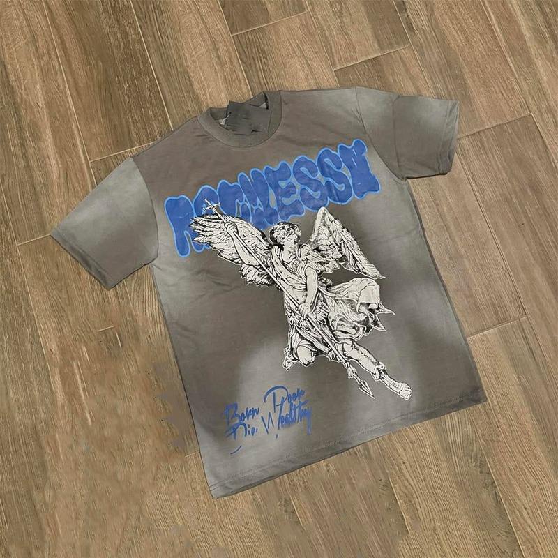 เสื้อยืดลายกราฟิกสำหรับผู้ชายเสื้อยืดลายพิมพ์ DTG ไหล่ตกไซส์ใหญ่พิเศษแบบเรียบ