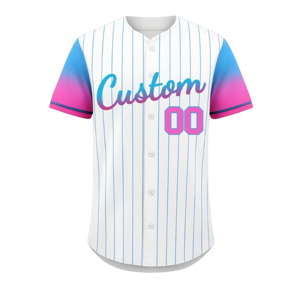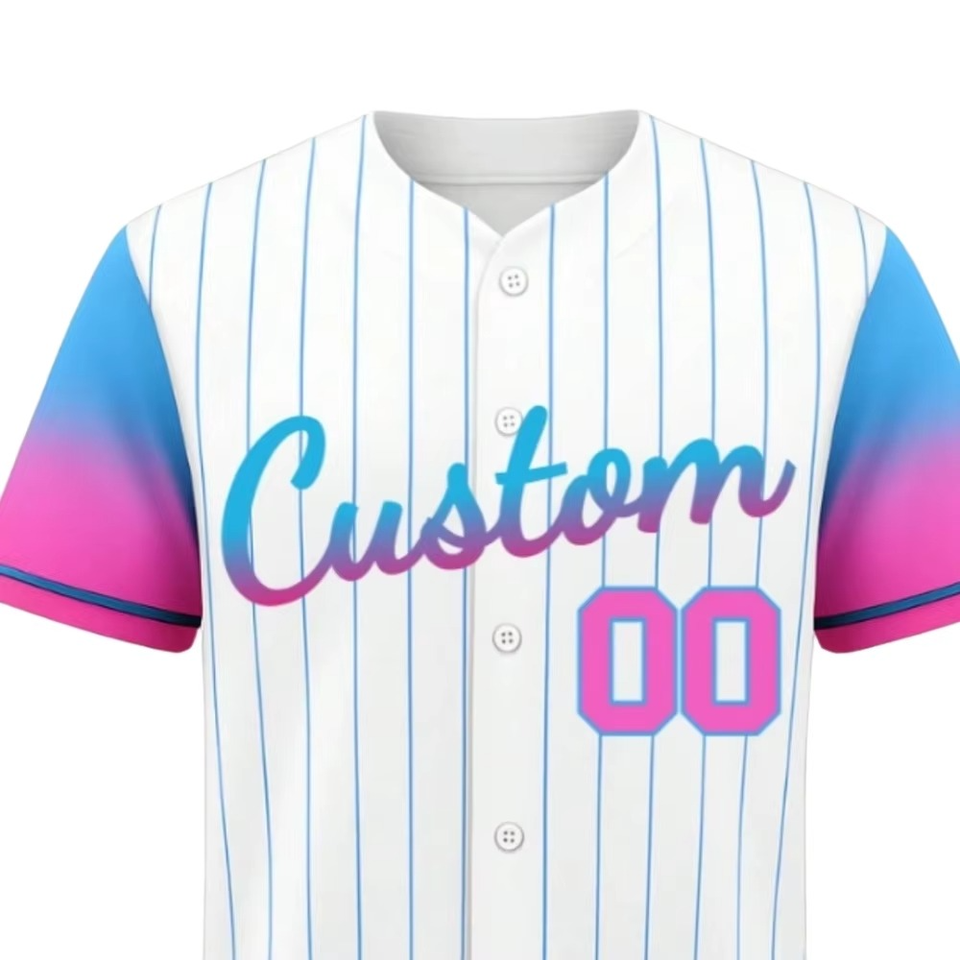 เสื้อเบสบอลแบบเรียบง่ายราคาประหยัด สั่งทำได้ พร้อมชื่อทีม หมายเลข โลโก้ ไซส์ใหญ่ ลายทาง ติดกระดุม