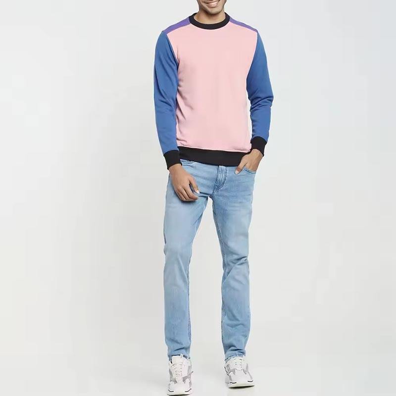 สเวตเชิ้ตคอแกะแบบสวมหัวสำหรับผู้ชายเสื้อกันหนาวคอกลมผ้าคอตตอนสีพื้น