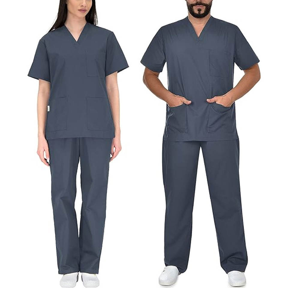 ชุดสครับผ้าทอพิมพ์โลโก้ตามสั่ง ชุดยูนิฟอร์มสครับสำหรับโรงพยาบาล ใช้ได้ทั้งชายและหญิง