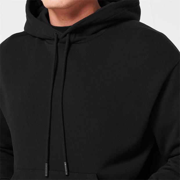 เสื้อมีฮู้ดสีดำผ้าฝ้ายธรรมดาพร้อมเชือกดึงปรับได้เสื้อฮู้ดสวมหัวใส่สบายสำหรับวัยรุ่นฤดูหนาว