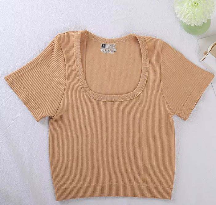 เสื้อยืดครอปผ้าฝ้ายธรรมดาสำหรับผู้หญิงพิมพ์ฉลากส่วนตัว OEM แบบกำหนดเอง