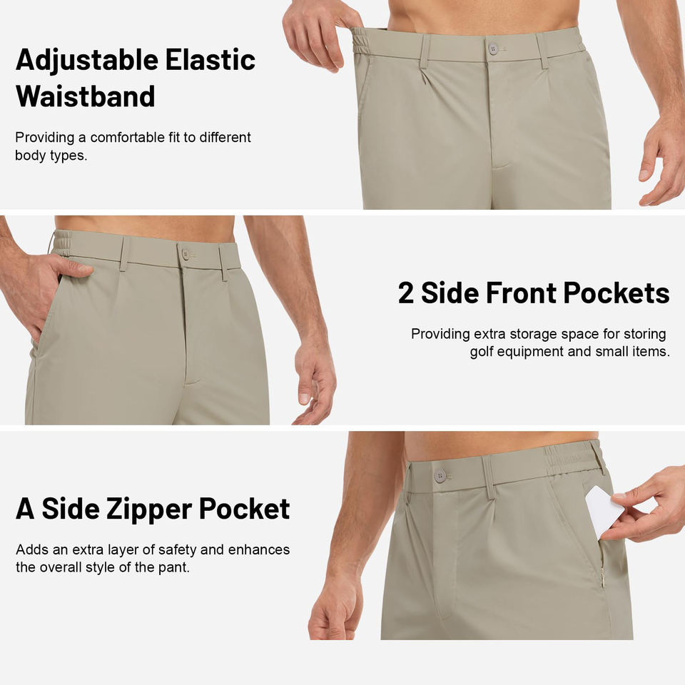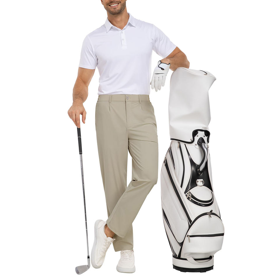 กางเกงกอล์ฟผู้ชายสีพื้นแบบกำหนดเองได้ เอวกลาง น้ำหนักเบา สวมใส่สบาย มีเชือกผูก ทรงตรง