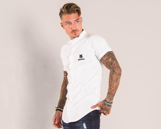 เสื้อยืดสำหรับผู้ชายผ้าฝ้ายสีขาวย้อมสีล้วนขนาด280กรัมเสื้อยืดสำหรับคลับมีกระดุมด้านหน้า