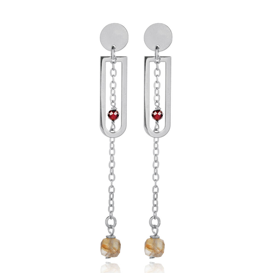 ต่างหูแบบเรียบง่าย ดีไซน์เรขาคณิต ประดับพลอยซิทริน ชุบโรเดียม ทำด้วยมือ เงินแท้ 925 สำหรับงานปาร์ตี้ หรือเป็นของขวัญ
