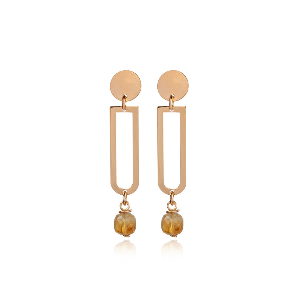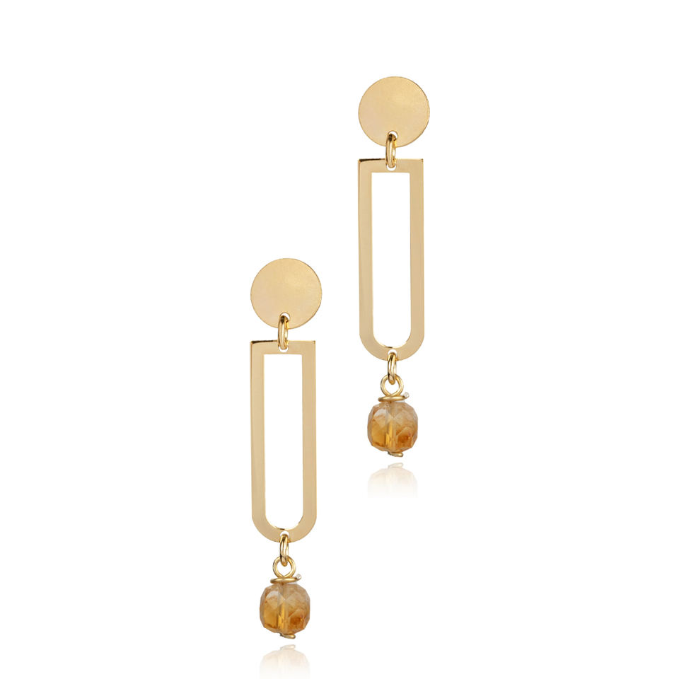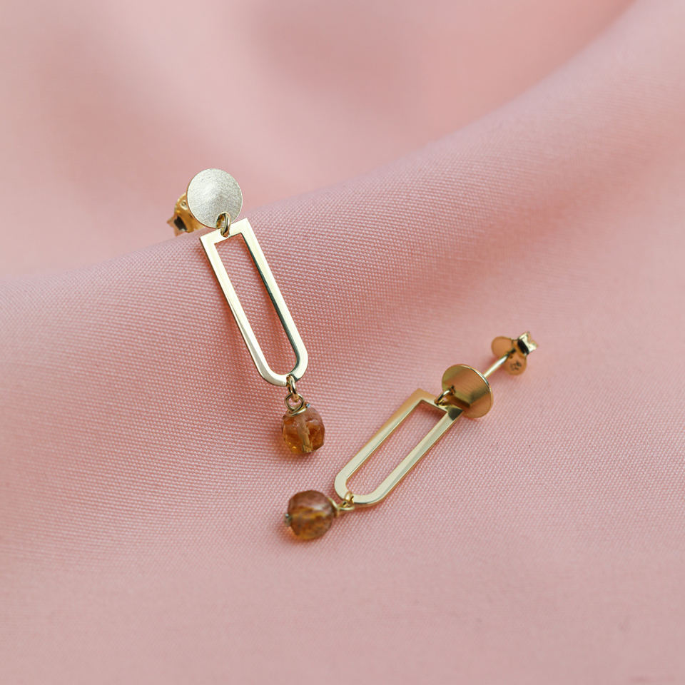 ต่างหูทรงเรขาคณิตเรียบง่ายประดับพลอยซิทริน งานแฮนด์เมดจากตุรกี ชุบทอง เงินแท้ 925 สำหรับวันครบรอบ