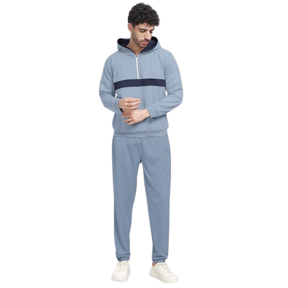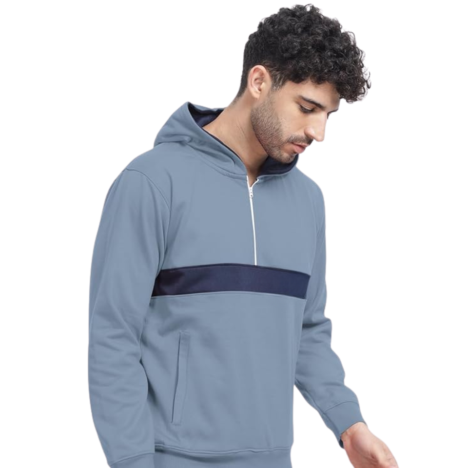ชุดกีฬาซิปครึ่งธรรมดาสำหรับผู้ชายชุดวอร์มมีฮู้ดผ้าฟลีซแบบพรีเมี่ยมชุดวิ่งพร้อมแถบสีตัดกัน