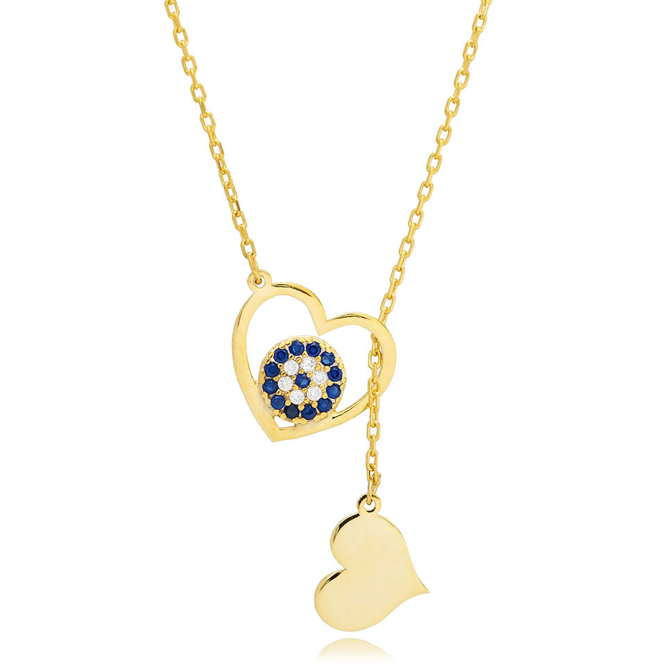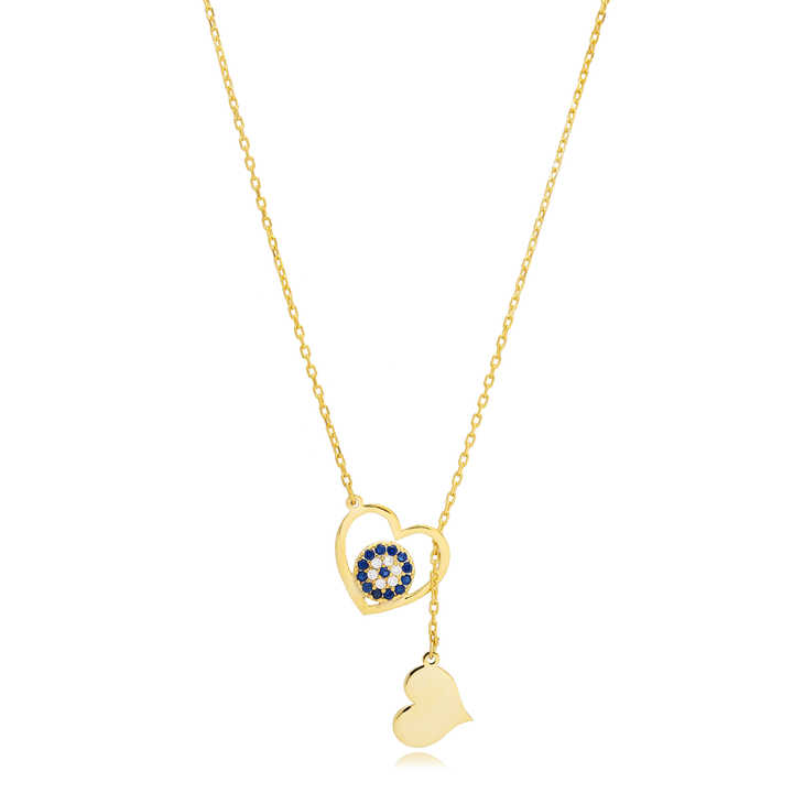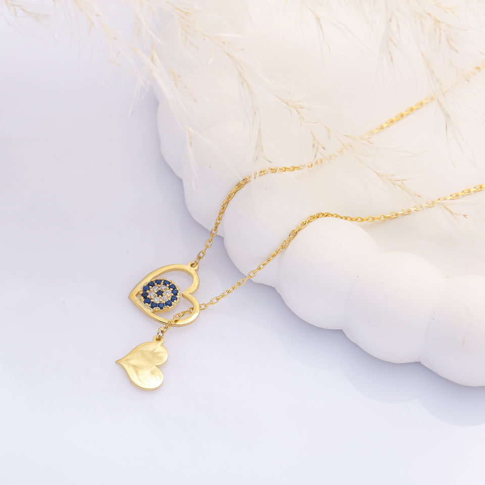 สร้อยคอเลเซอร์รูปหัวใจธรรมดาพร้อมการออกแบบดวงตาคู่เสน่ห์ของ925ตุรกีเครื่องประดับเงินสเตอร์ลิง