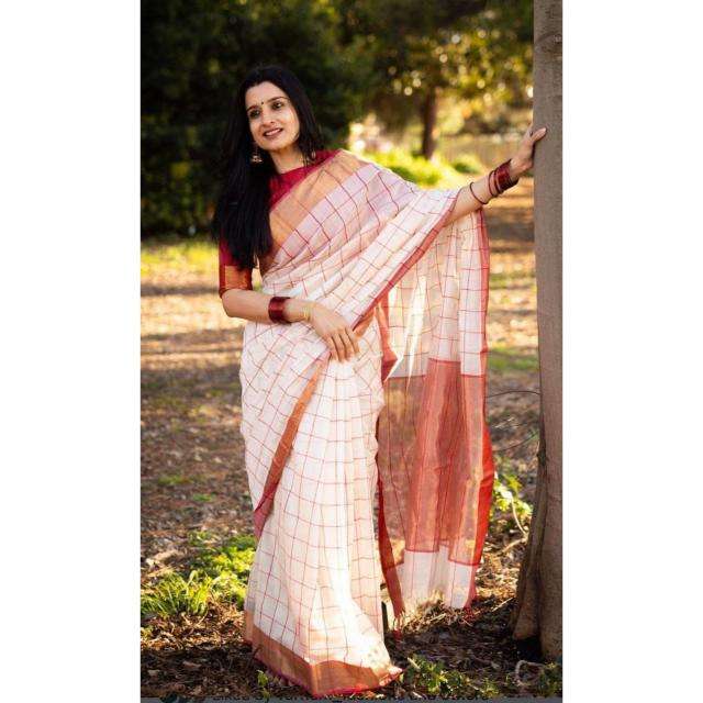 ชุดผ้าลินินส่าหรีส่าหรีพิมพ์ลายบอลลีวูดสำหรับงานปาร์ตี้จากร้านบูติกอินเดีย