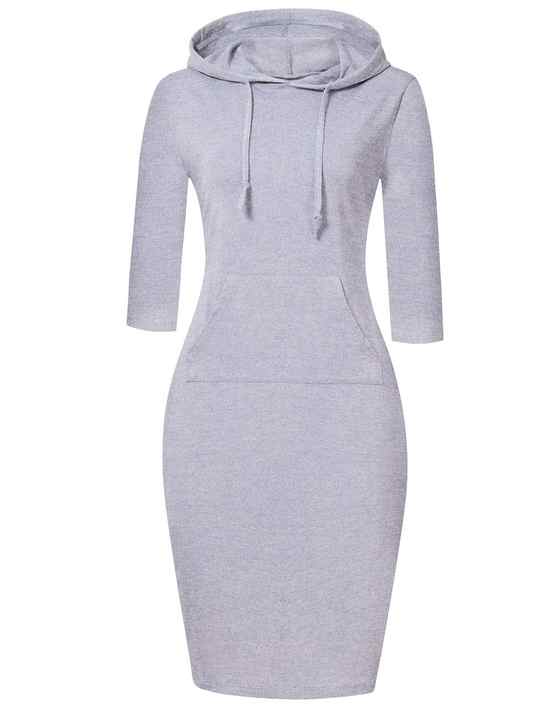 ชุดเดรสแขนยาวแบบเรียบง่ายมีฮู้ดสำหรับผู้หญิงเดรสแขนยาวแบบสวมหัวผ้าคอตตอน100% ไหล่ตกชุดเดรสแขนยาวออกแบบได้ตามต้องการ