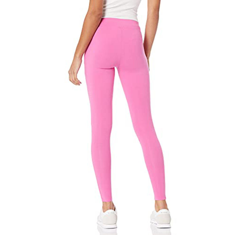 เลกกิ้งผู้หญิงสีชมพูพื้น ผ้าโพลีเอสเตอร์ผสมสแปนเด็กซ์ สวมใส่สบาย เหมาะสำหรับโยคะและฟิตเนส ไร้ตะเข็บ เอวสูง