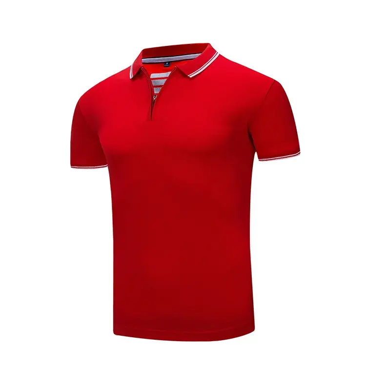 เสื้อโปโลผู้ชายแขนสั้นสำหรับผู้ชายผ้าเจอร์ซีย์ระบายอากาศได้ดีใส่สบายสีพื้นสีแดงเข้มเย็บปักโลโก้ได้ตามต้องการ