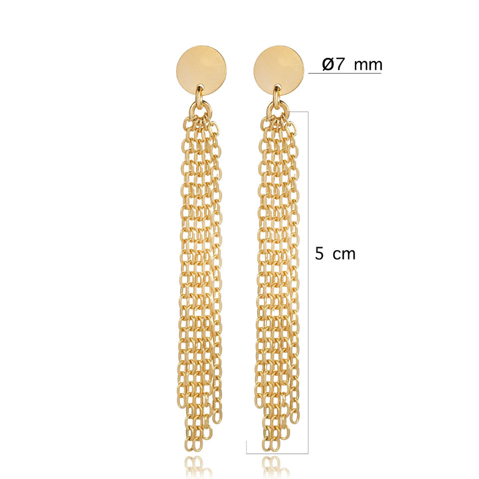 ต่างหูแบบยาวทรงกลมเรียบง่าย ดีไซน์แบบโซ่ ชุบทอง ทำด้วยมือจากตุรกี เครื่องประดับเงินแท้ 925 สำหรับวันครบรอบ