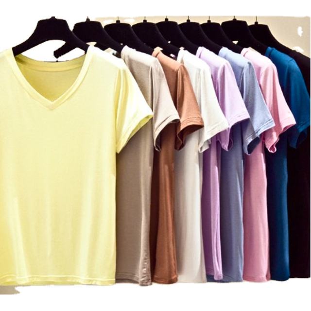เสื้อยืดคอวีสำหรับผู้หญิงเสื้อยืดโอเวอร์ไซส์ผ้าคอตตอนสีพื้นผ้าฝ้าย100% เป็นมิตรต่อสิ่งแวดล้อมพร้อมโลโก้ตามสั่ง