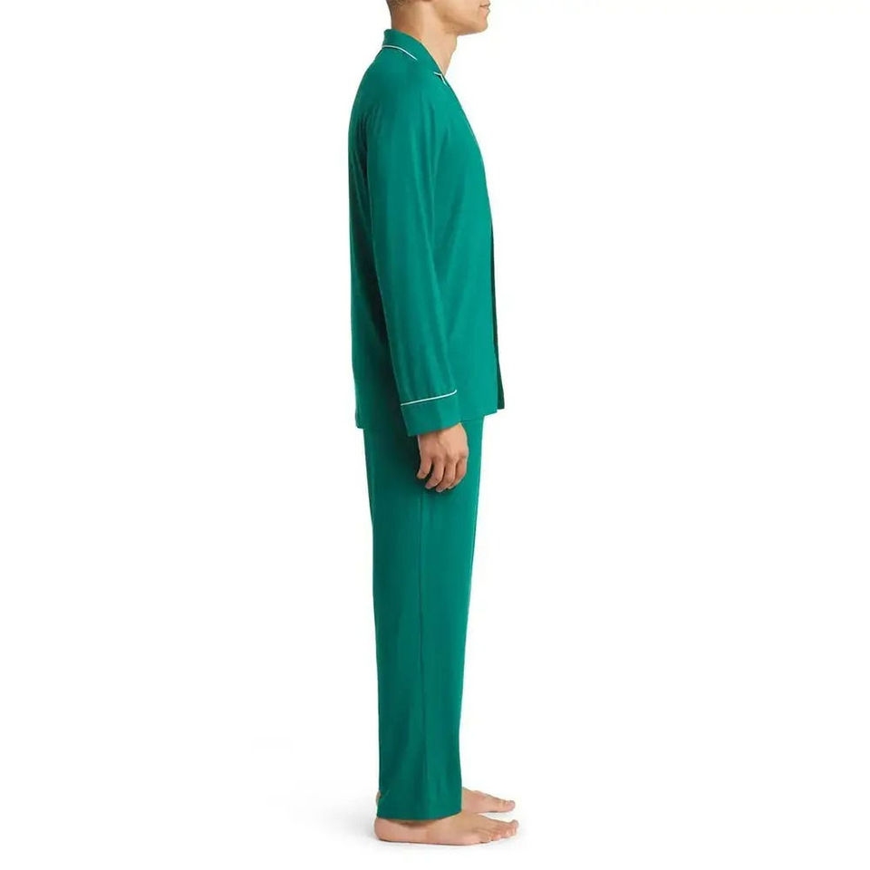 ชุดนอนผ้าซาตินสีพื้นสำหรับผู้ชาย ระบายอากาศได้ดี แห้งเร็ว ไม่หดตัว ทนทานสูง เสื้อและกางเกงขายาว ชุดลำลอง