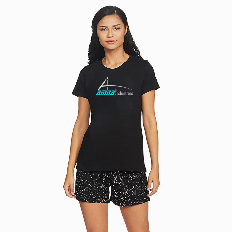 เสื้อยืดธรรมดากับกางเกงขาสั้นพิมพ์แฟนซีชุดถนนสวมใส่ชุดฤดูร้อนแฟนซี