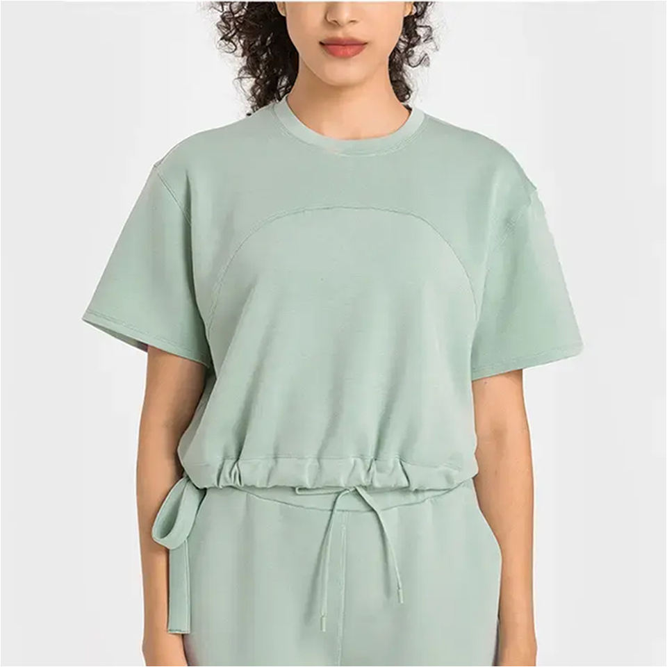 ชุดเดรสคอกลมสำหรับผู้หญิงเสื้อยืดคอกลมสำหรับใส่ลำลองและกางเกงขาสั้น