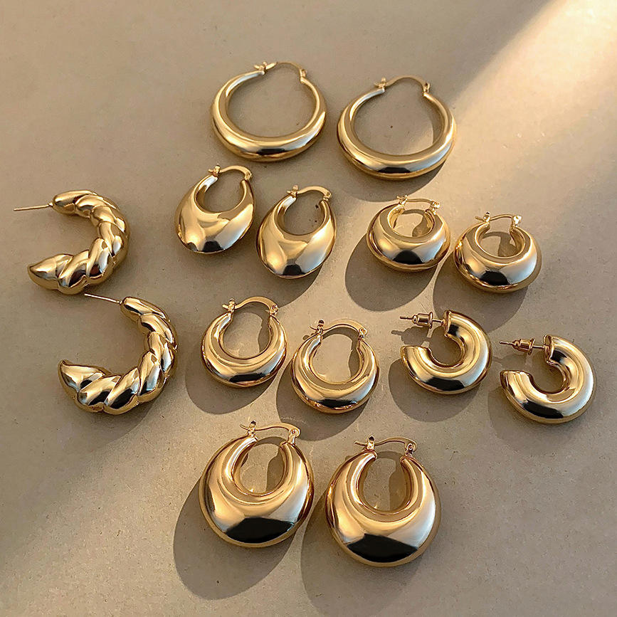 ต่างหูมีฮู้ดทรงรีทรงกลมบิดเรียบสำหรับผู้หญิงต่างหูสแตนเลสแฟชั่นสำหรับทุกวัน