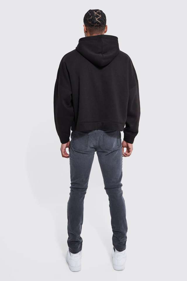 Plain Unisex French Terry Oversized Drop Shoulder Cropped Hoodie High Quality 100% Cotton Boxy Style
