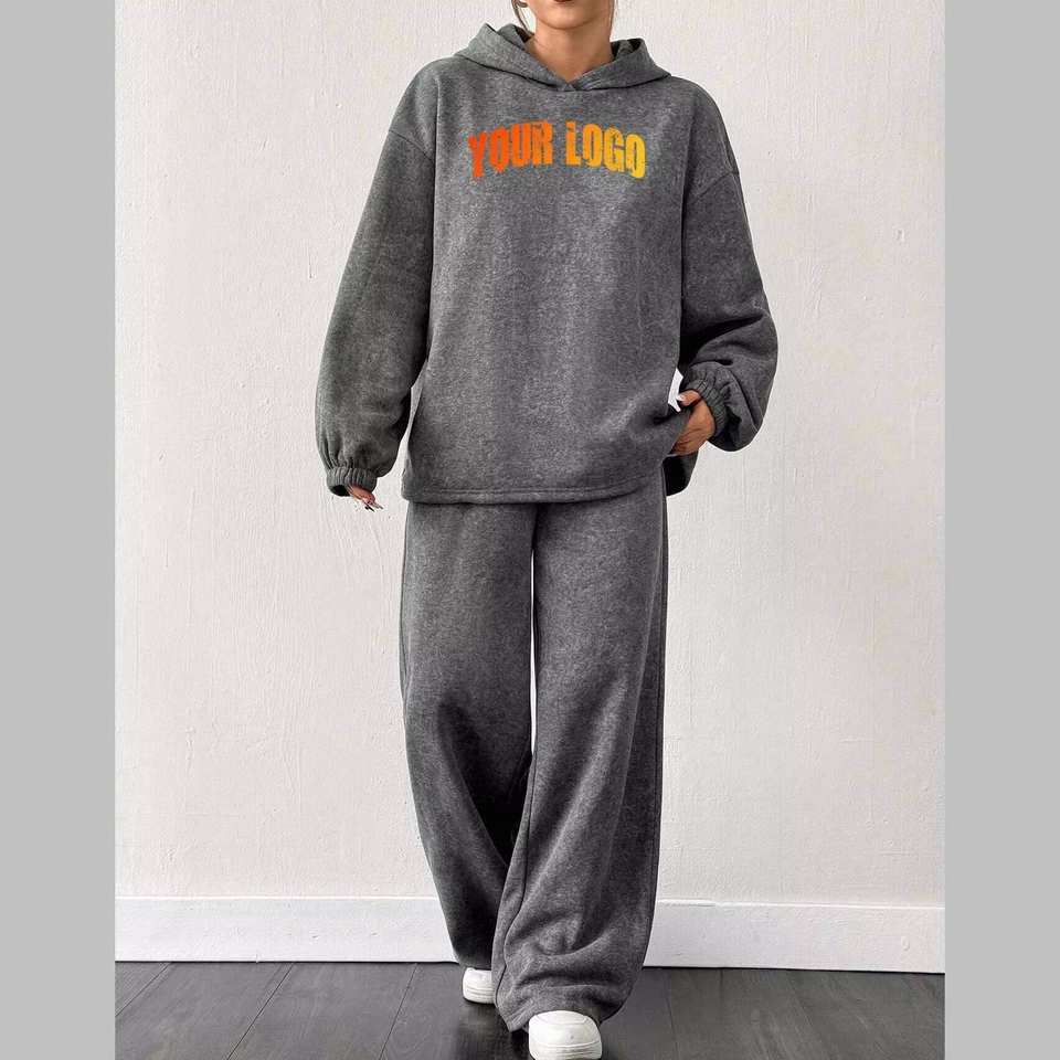ชุดเซ็ตเสื้อและกางเกงวอร์มผ้าเทอร์รี่ฟลีซสำหรับผู้หญิง สวมใส่สบายๆ ในฤดูหนาว เหมาะสำหรับใส่ในชีวิตประจำวัน ผ้าเนื้อนุ่ม อุ่นสบาย