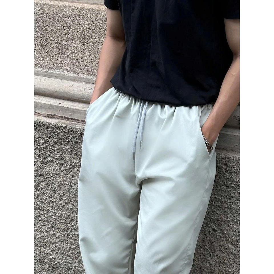 กางเกงทรงหลวมสีกากีสีพื้นขาตรงเอวยางยืดใส่ได้ทั้งชายและหญิงสวยผ้าเท่ๆผู้ชายและผู้หญิง