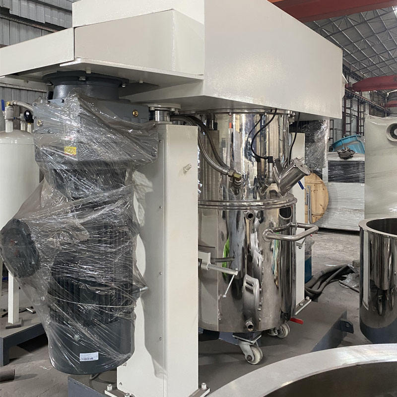 เครื่องผสมแบบแพลนเนทารี พร้อมอุปกรณ์ยกถังและเท สำหรับสายการผลิตกาวซิลิโคน