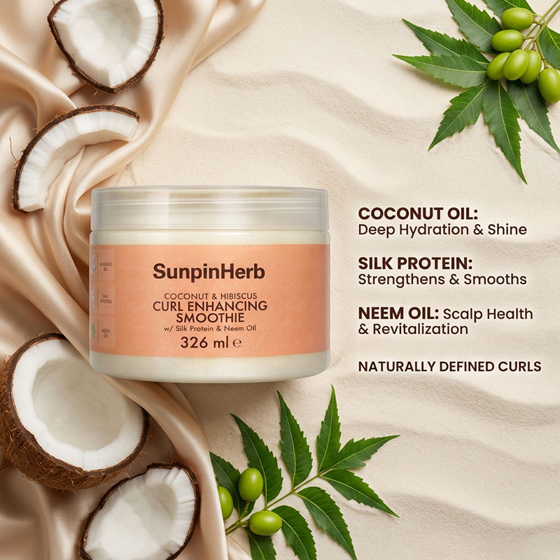 สมูทตี้บำรุงลอนผมจากพืช ผสมน้ำมันมะพร้าว ฮิบิสคัส และนีม สำหรับผมลอนธรรมชาติที่นุ่มลื่น เงางาม และดูโดดเด่น