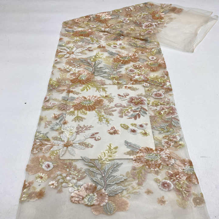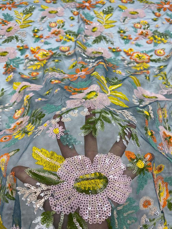 ชุดเดรสผ้าปักลายดอกไม้หลากสีประดับเลื่อมสำหรับผู้หญิง ชุดกี่เพ้าผ้าประดับลูกปัด
