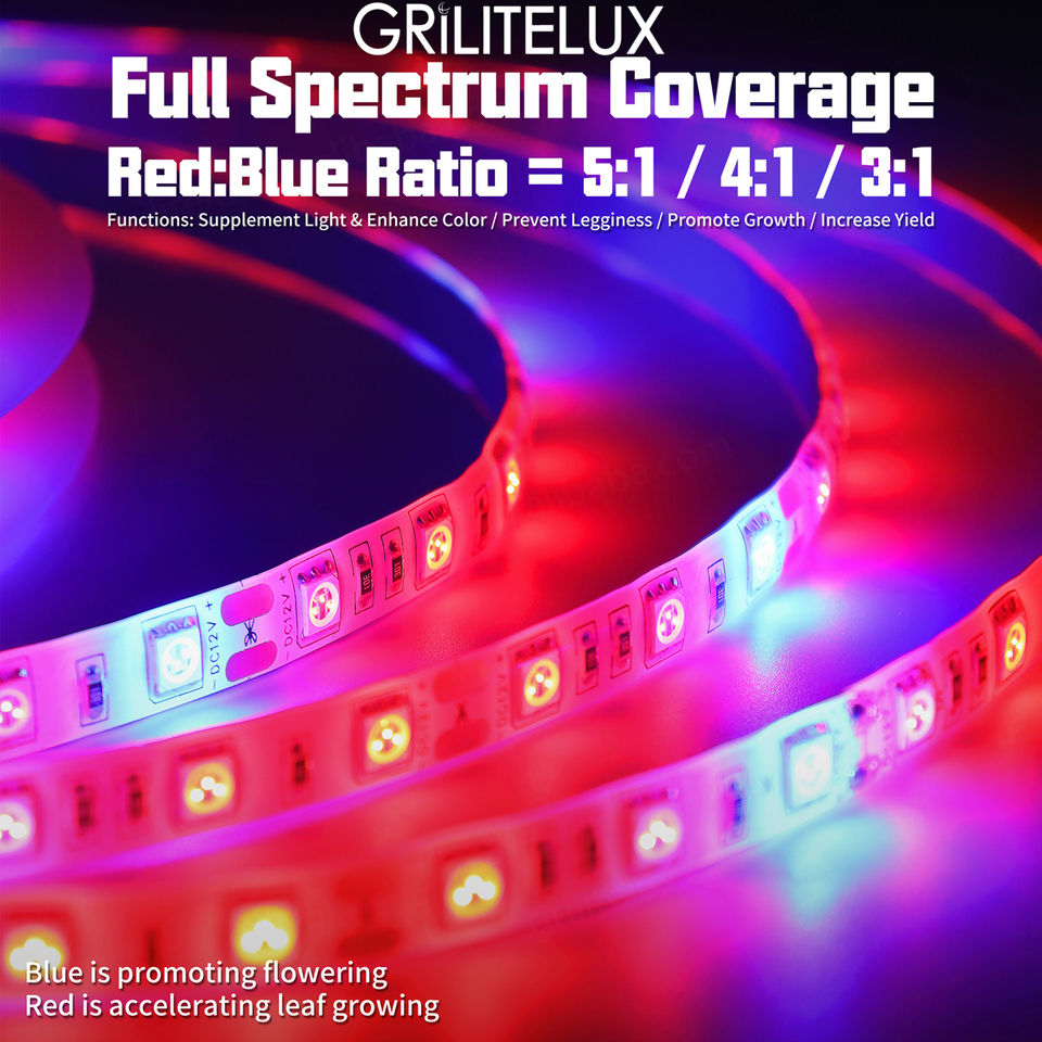 แถบไฟเติบโตของพืช60LEDs/M DC12V 10mm PCB IP20/IP65 12-14วัตต์/เมตร660nm สีแดง450nm สีฟ้าสเปกตรัมคู่นำแสงเทปไฟเติบโต