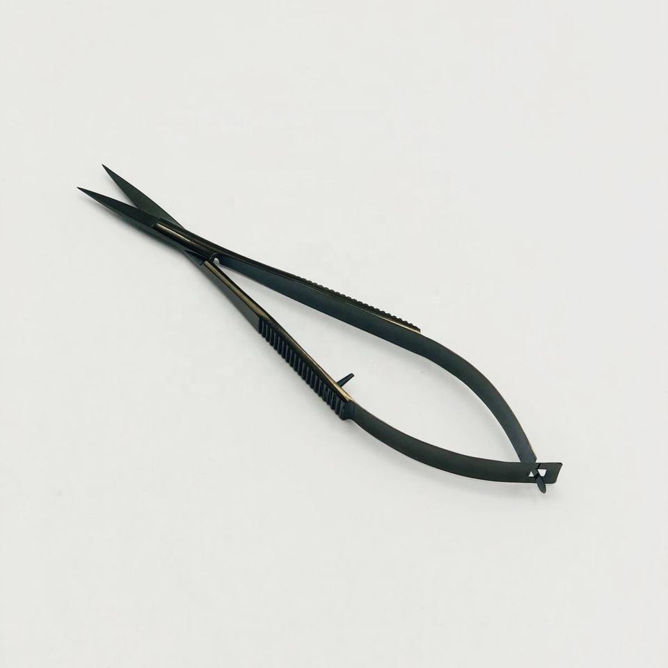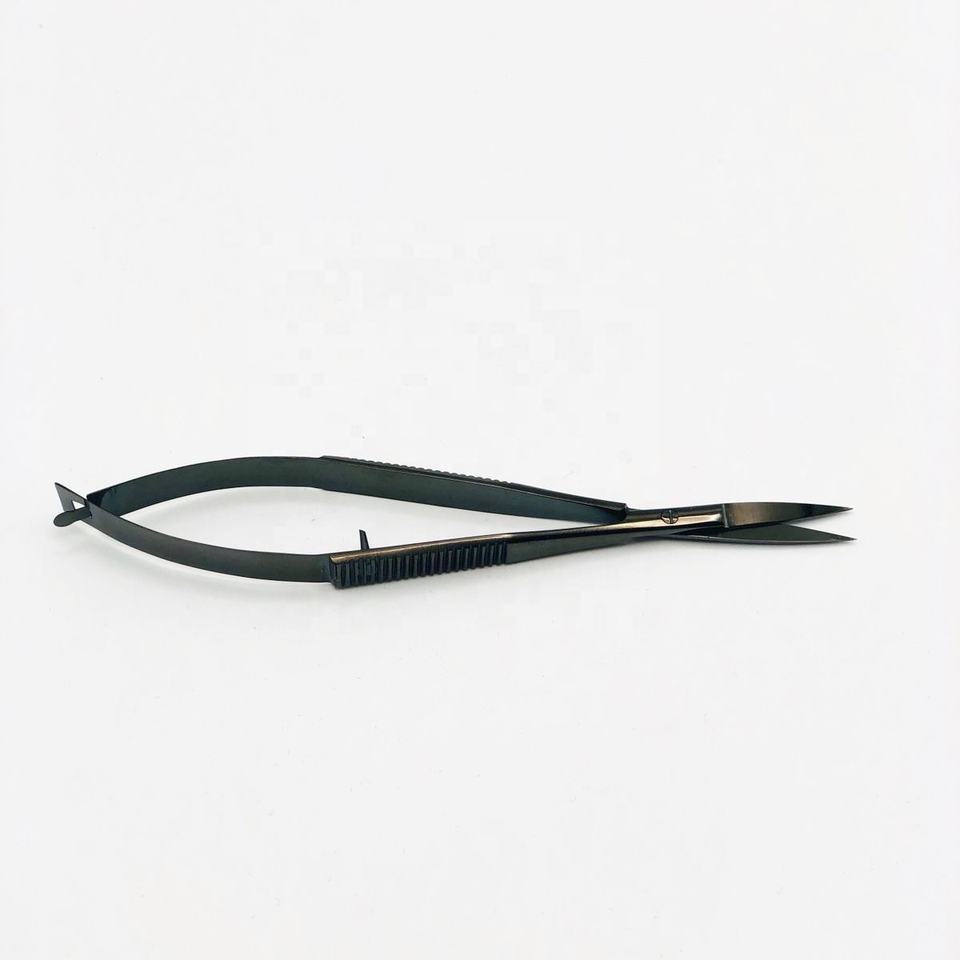 Solid Stainless Steel Spring Action Scissor Snips Plasma Black Sharp Curved Tip for Efficient Thread Cutting Makeup Scissors