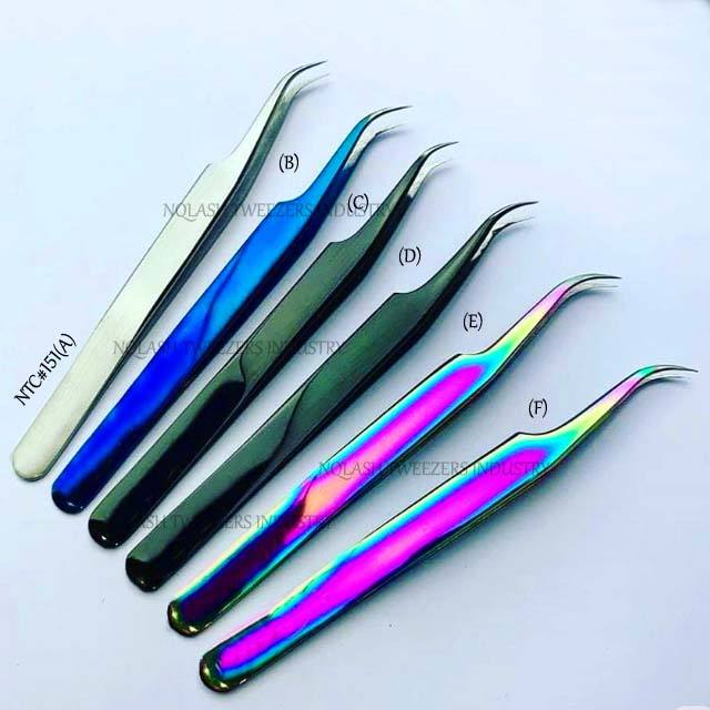 แหนบขนตาปลอมแบบมีด้ามจับติดเพชรสีรุ้งแหนบขนตาแบบปรับได้ตามต้องการ