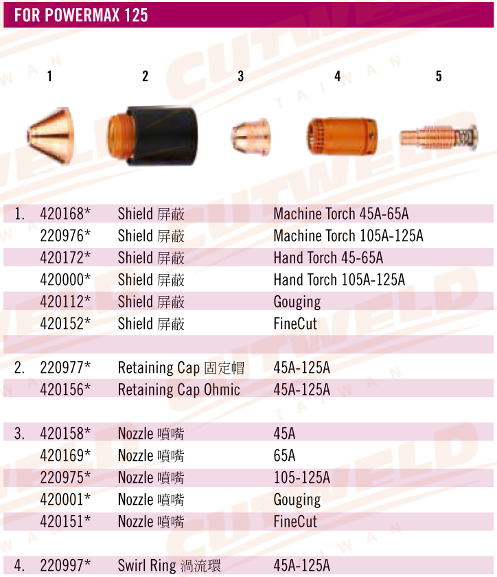 หัวตัดพลาสมา 45A รุ่น 420158 สำหรับเครื่องตัดพลาสมา Powermax125