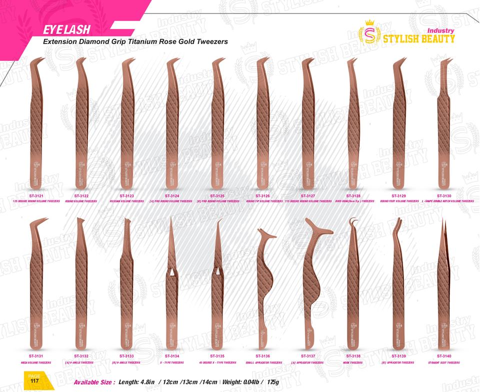 แหนบขนตาปลายสายไฟเบอร์กริปเพชรแบบกึ่งโค้งสีทองกุหลาบแบบกำหนดเองฉลากตามต้องการ