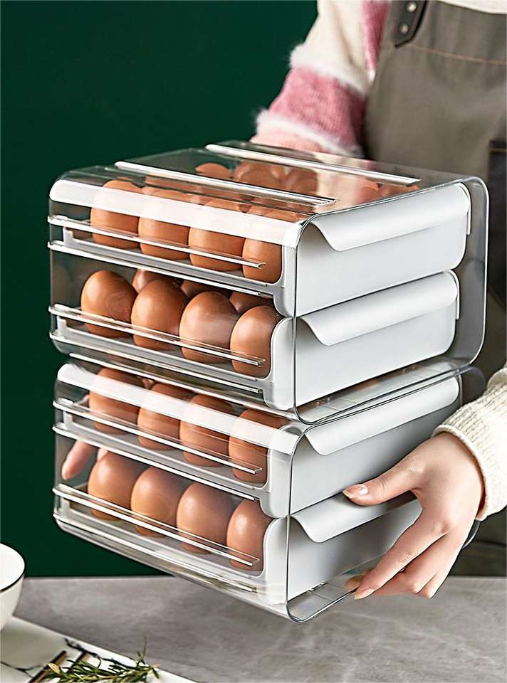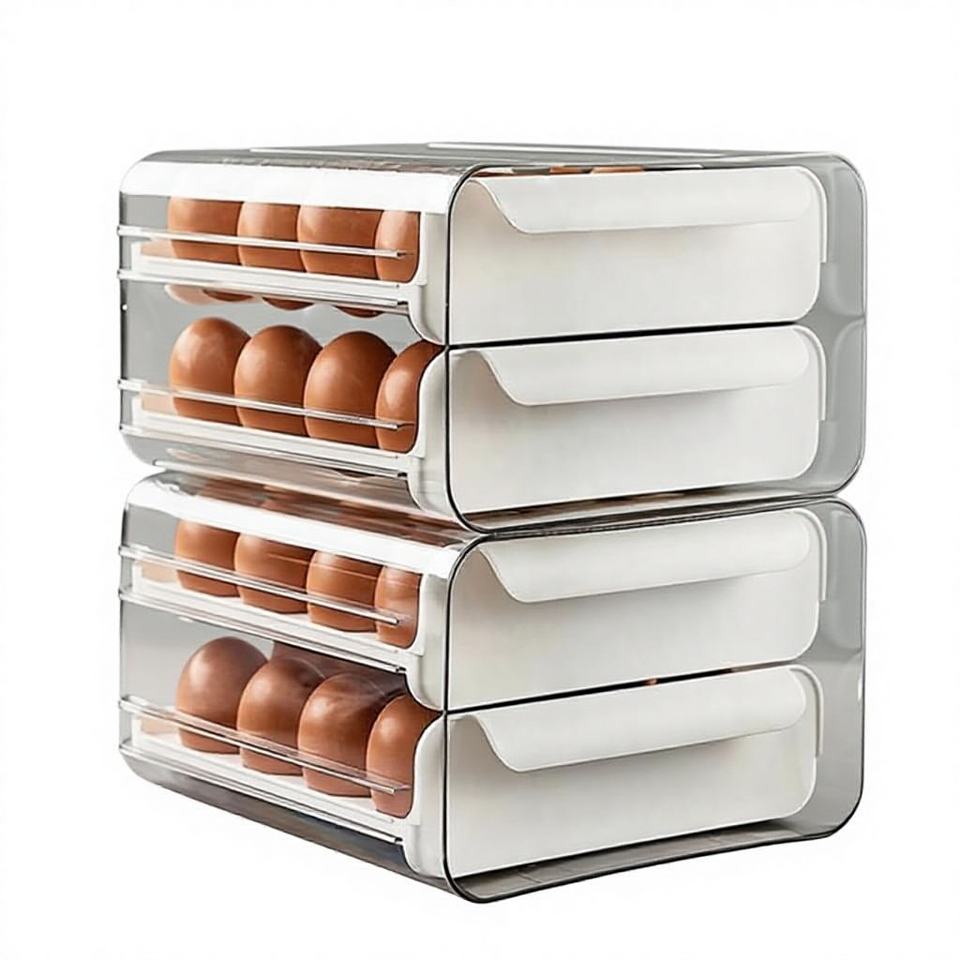 กล่องเก็บไข่ในตู้เย็น 2 ชั้น วัสดุเกรดอาหาร แบบถอดได้ 32 ช่อง วางซ้อนกันได้ ดีไซน์มินิมอล สำหรับห้องครัว