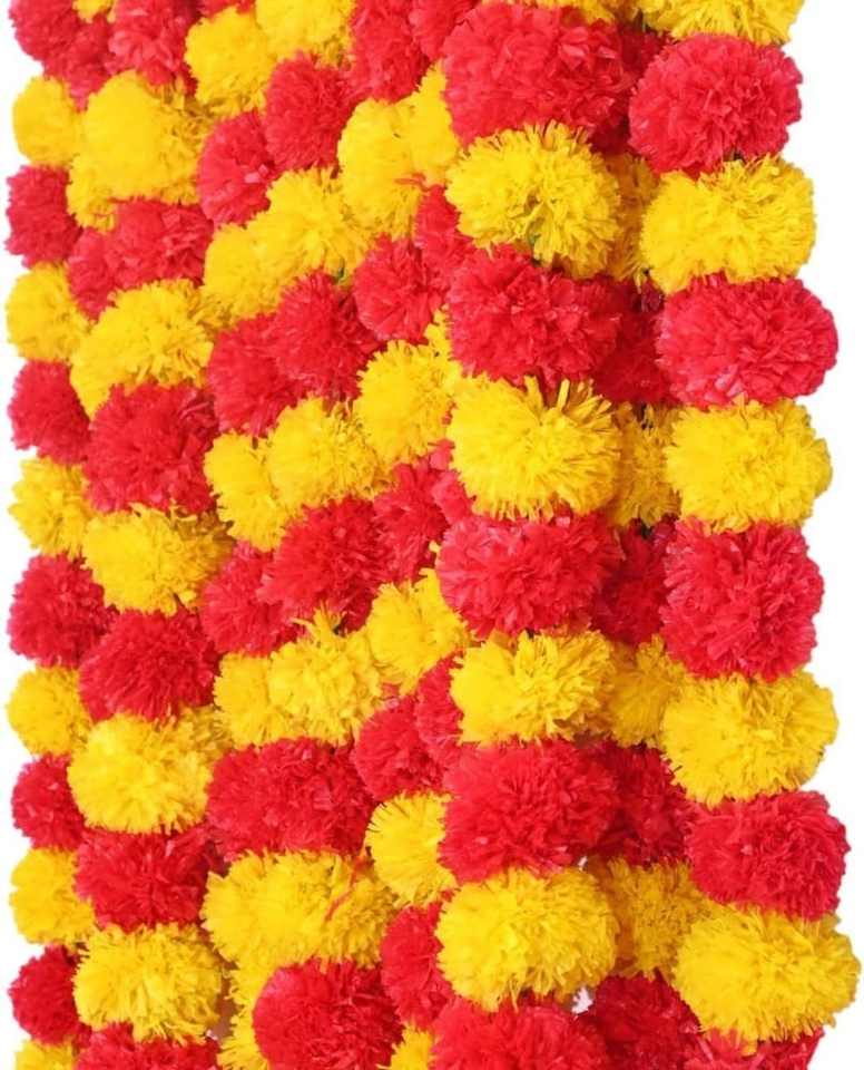 ดอกมะลิประดิษฐ์พลาสติก ดอกบัวประดิษฐ์สวยงาม สายดอกไม้ประดิษฐ์สำหรับตกแต่งวันดีวาลี งานกันปัตย์ปุจจา วัด และมณฑิร