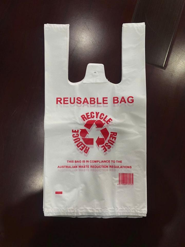 ถุงพลาสติกสั่งทำกระเป๋าช้อปปิ้งพิมพ์เสื้อยืดถุงผ้า HDPE ซูเปอร์มาร์เก็ตสำหรับขนส่งเสื้อกั๊กเวียดนาม