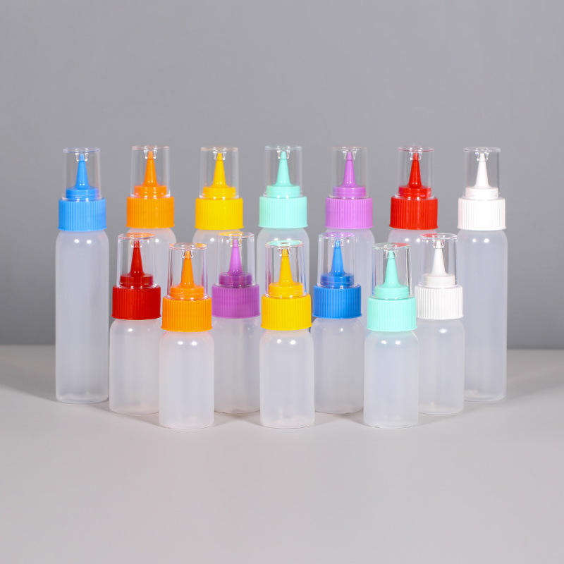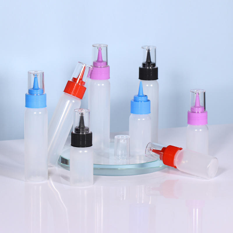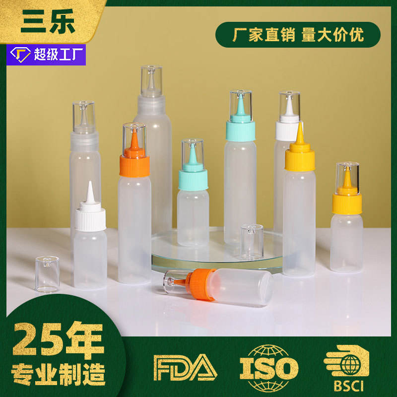 ขวดพลาสติก 30 มล. 60 มล. 120 มล. แบบบีบสำหรับกาว สี สารเคมี บรรจุภัณฑ์ทรงกระบอก LDPE ฝาเกลียว สีจริง