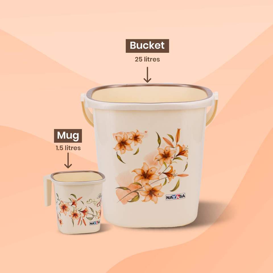 ชุดถังพลาสติกสำหรับห้องน้ำ ถังและแก้วน้ำ 25 ลิตร และ 1.5 ลิตร ชุดห้องน้ำ 2 ชิ้น ชุดอุปกรณ์ห้องน้ำ สีขาว