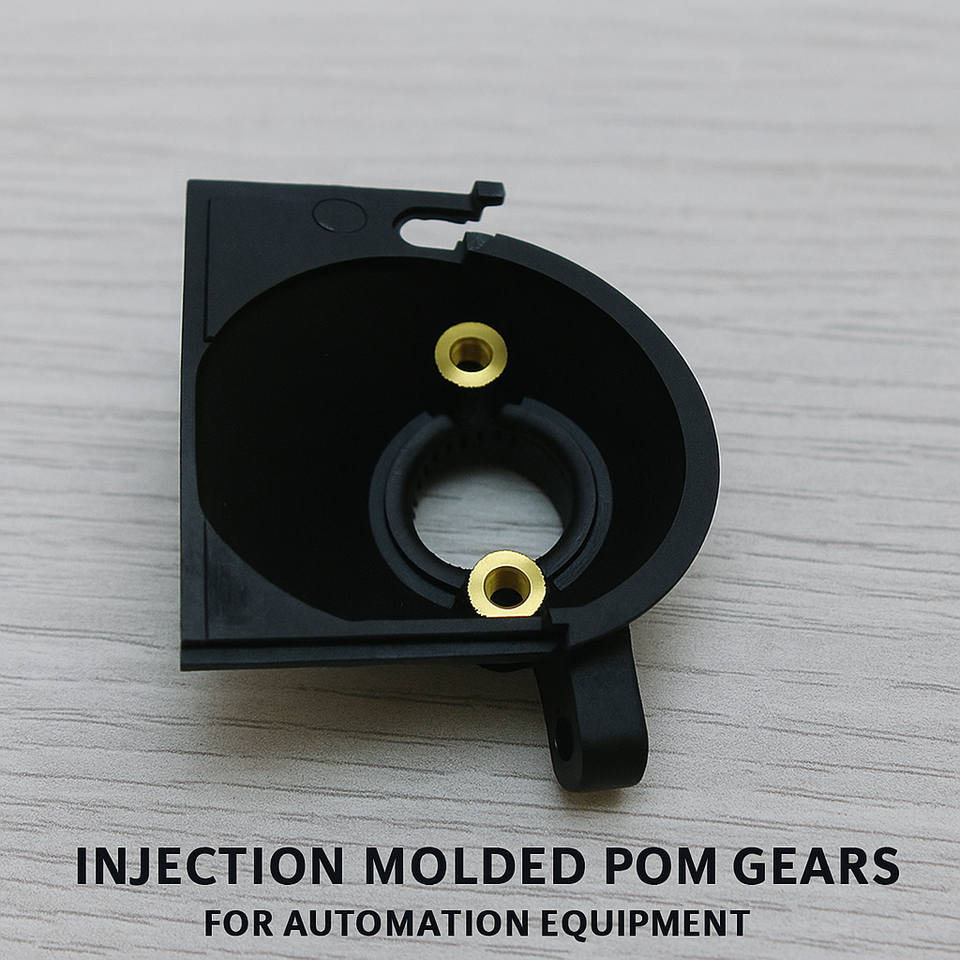 แม่พิมพ์พลาสติกแบบฉีดเกียร์ปอมที่ทนทานต่อการสึกหรอสูงสำหรับอุปกรณ์ระบบอัตโนมัติทางอุตสาหกรรมโมเดลบริการ OEM สีแบบกำหนดเอง