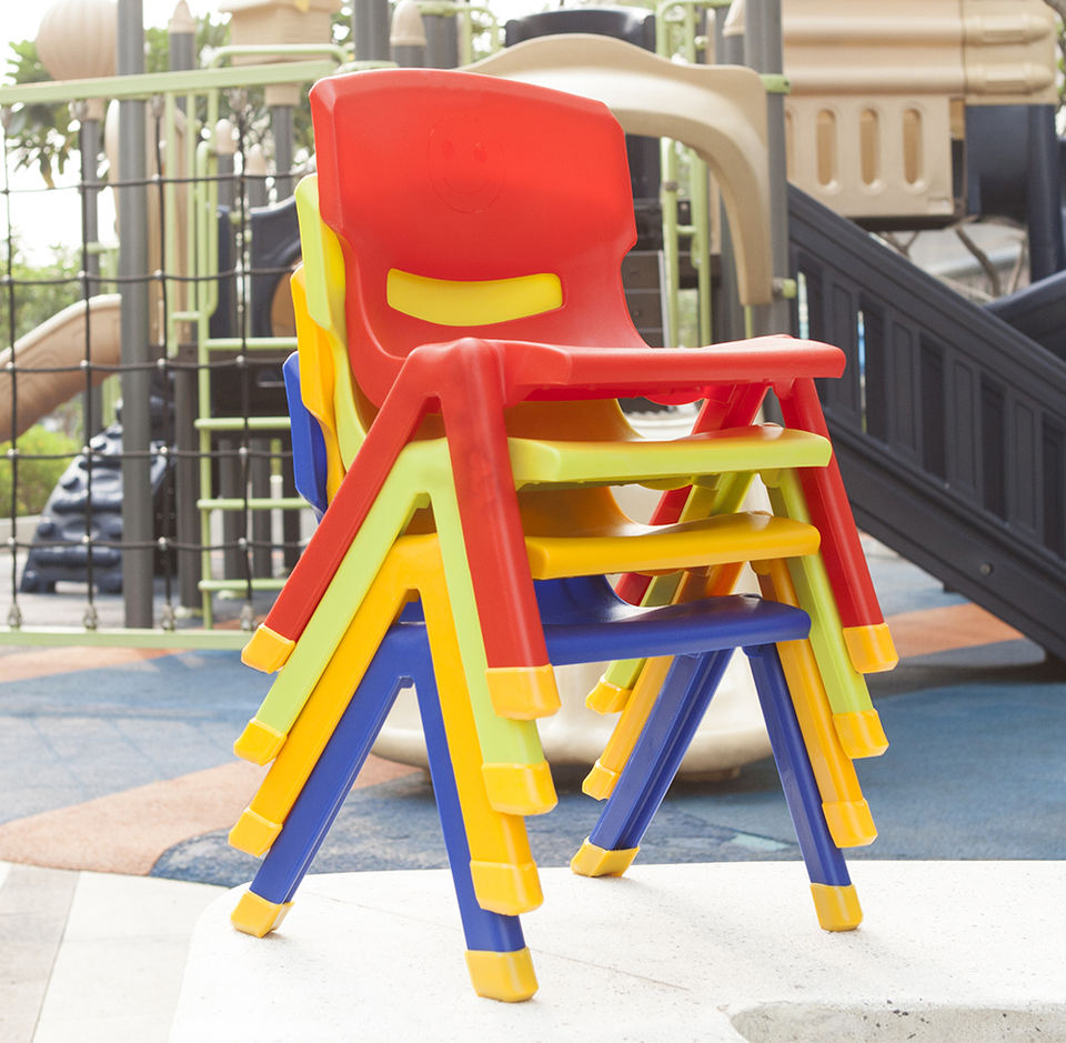 เก้าอี้พลาสติกความสูง46ซม. ไม่มีส่วนโลหะวางซ้อนได้อย่างสมบูรณ์แบบสำหรับหลายฉากการดูแลเด็กอนุบาลหรือสีตามต้องการ