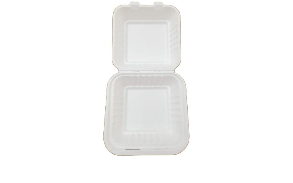 กล่องอาหารแบบใช้แล้วทิ้ง ขนาด 8x8 นิ้ว ทำจากชานอ้อย ย่อยสลายได้ สำหรับใส่อาหารกลางวัน อาหารกล่อง และงานจัดเลี้ยง