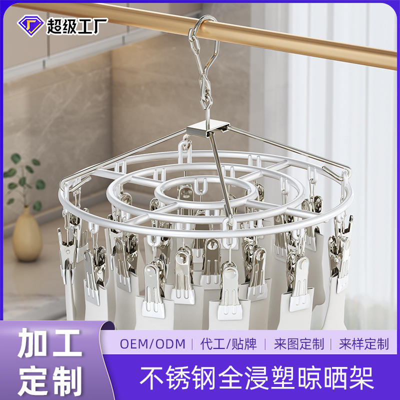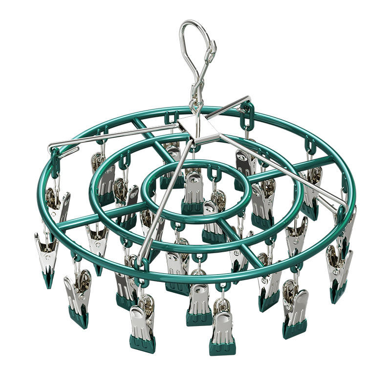 ราวตากผ้าทรงกลมเคลือบพลาสติกพร้อมคลิปหนีบ 24 ตัว แบบตะขอ แขวนเสื้อผ้าได้ พกพาสะดวก สำหรับตากผ้าที่บ้าน เช่น ถุงเท้า เสื้อผ้าเด็ก ชุดชั้นใน