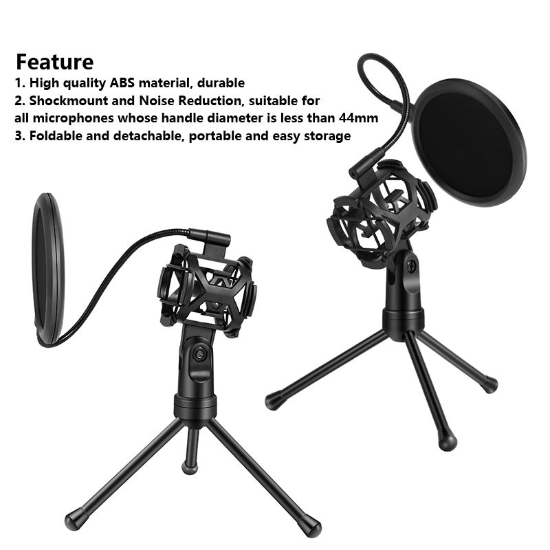 ขาตั้งไมโครโฟนแบบตั้งโต๊ะพลาสติกพร้อมตัวกรองเสียงสำหรับการบันทึกเพลง เล่นเกม และพอดแคสต์
