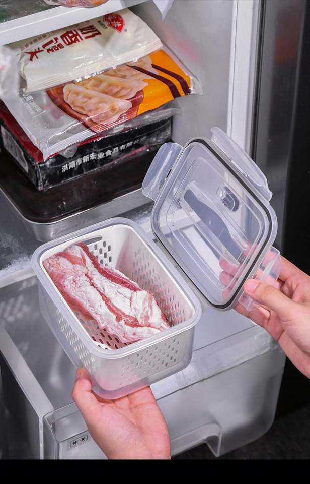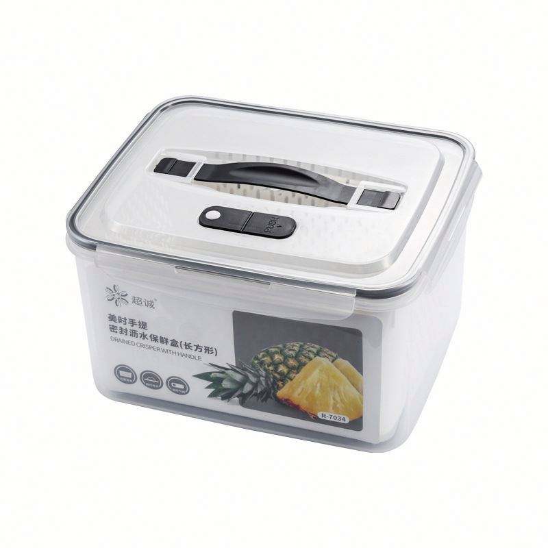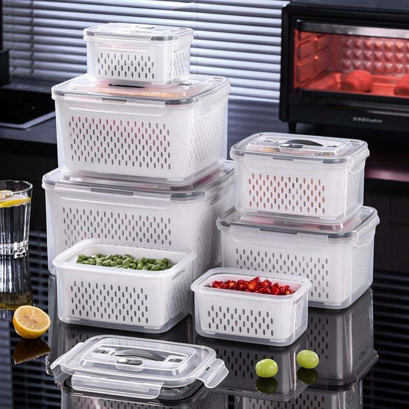 กล่องจัดระเบียบภาชนะบรรจุตู้เย็นผลไม้ทำจากพลาสติกพร้อมฝาปิดและกระชอนที่ถอดออกได้