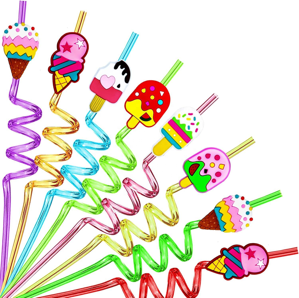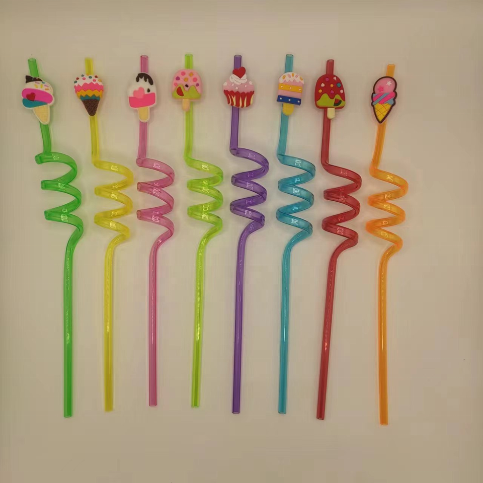 หลอดดูดไอศกรีมพลาสติกแบบเกลียวอุปกรณ์เสริมสำหรับปาร์ตี้วันเกิดไอศกรีมฤดูร้อน