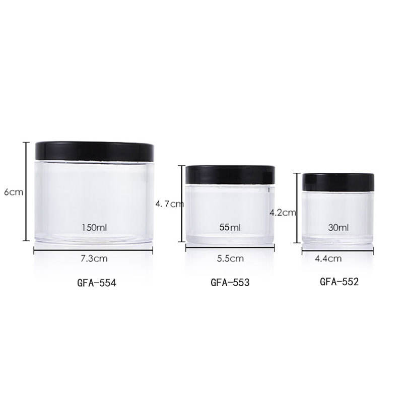 ขวดพลาสติกใสทรงกลมปากกว้าง 15 มล. 30 มล. 60 มล. 150 มล. สำหรับบรรจุภัณฑ์ครีมเครื่องสำอาง วัสดุ PS